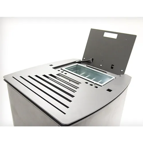 | Caractéristiques techniques | Surface de chauffe : plus de 200m² (pour une hauteur de 2.50 m) Dimensions L*P*H en mm : 580 x 580 x 1240 mm Norme CE : EN 14785 / 15AB-VG Matière : acier inoxydable Couleur : Gris Anthracite Puissance thermique globale : 28.5 kW Puissance thermique apportée (à puissance nominale) : 25.7 kW Puissance thermique apportée (à puissance réduite) : 8.1 kW Puissance thermique (à puissance nominale) : 21.7 kW Puissance thermique réduite (à puissance réduite) : 6.7 kW Rendement (à puissance nominale) : 90 % Température des fumées (à puissance nominale) : 183 °C Température des fumées (à puissance réduite) : 101 °C CO2 (à puissance nominale) : 11.8 % CO2 (à puissance réduite) : 5.6 % CO à 13% O2 (à puissance nominale) : 43 mg/Nm³ CO à 13% O2 (à puissance réduite) : 22 mg/Nm³ Tirage minimum et maximum : 12 Pa – 12 Pa Capacité du réservoir à granulés : 35 Kg Consommation de granulés (à puissance nominale) : 6.0 Kg/h Consommation de granulés (à puissance réduite) : 1.9 Kg/h Diamètre pour la sortie des fumées : Ø 100 mm Diamètre raccordement Hydraulique : 3/4″ Diamètre Porte-Gomme de la soupape de sécurité : 15 mm maximum Tension et fréquence de l’alimentation électrique : 220V~ 50Hz Consommation électrique Maximum : 480 W Combustible : Bois Type de combustible : Granulés Dimension de combustible : Ø 6 mm – Longueur 20 mm ± 20% Poids du poêle : 172 Kg. |